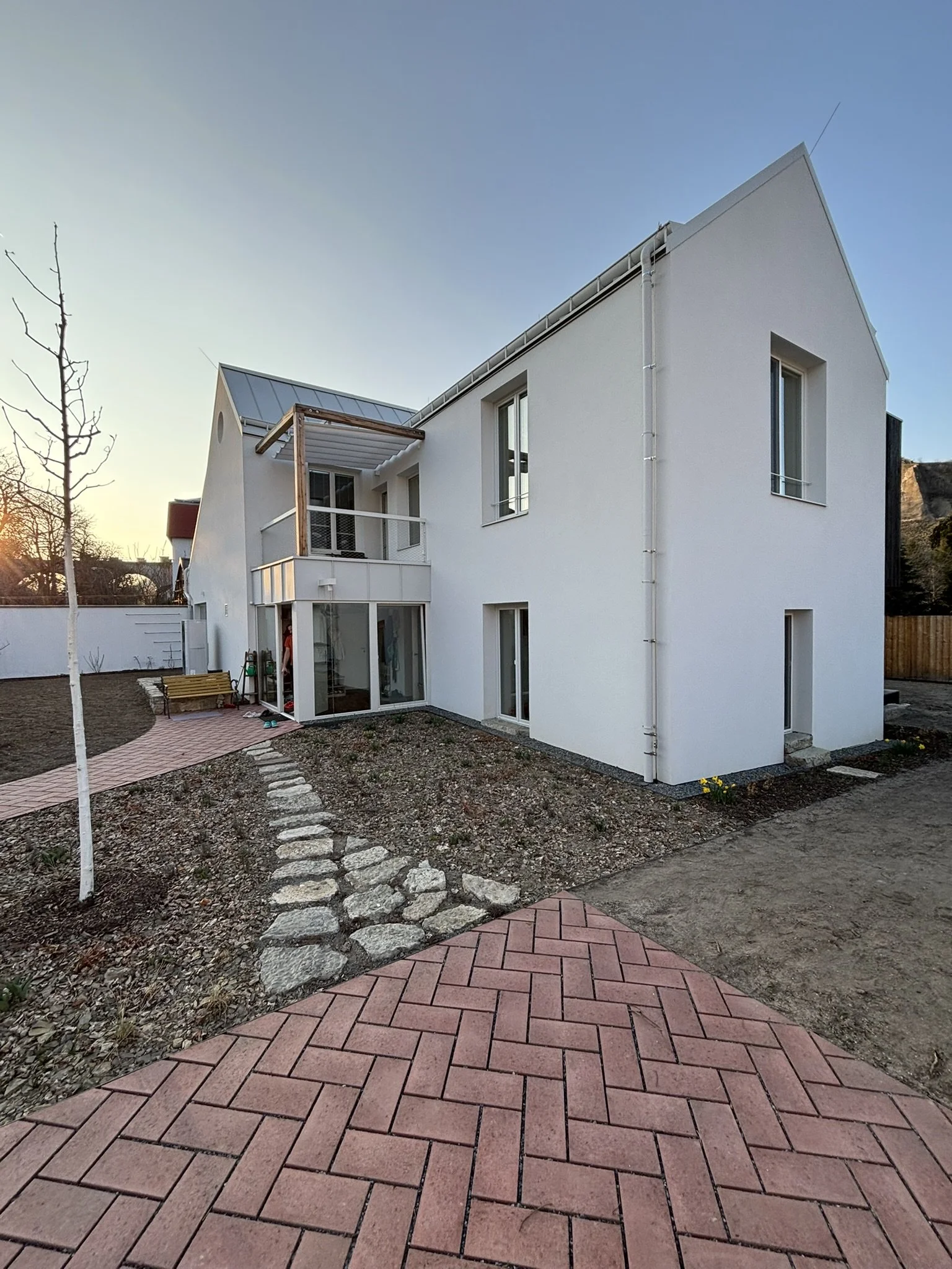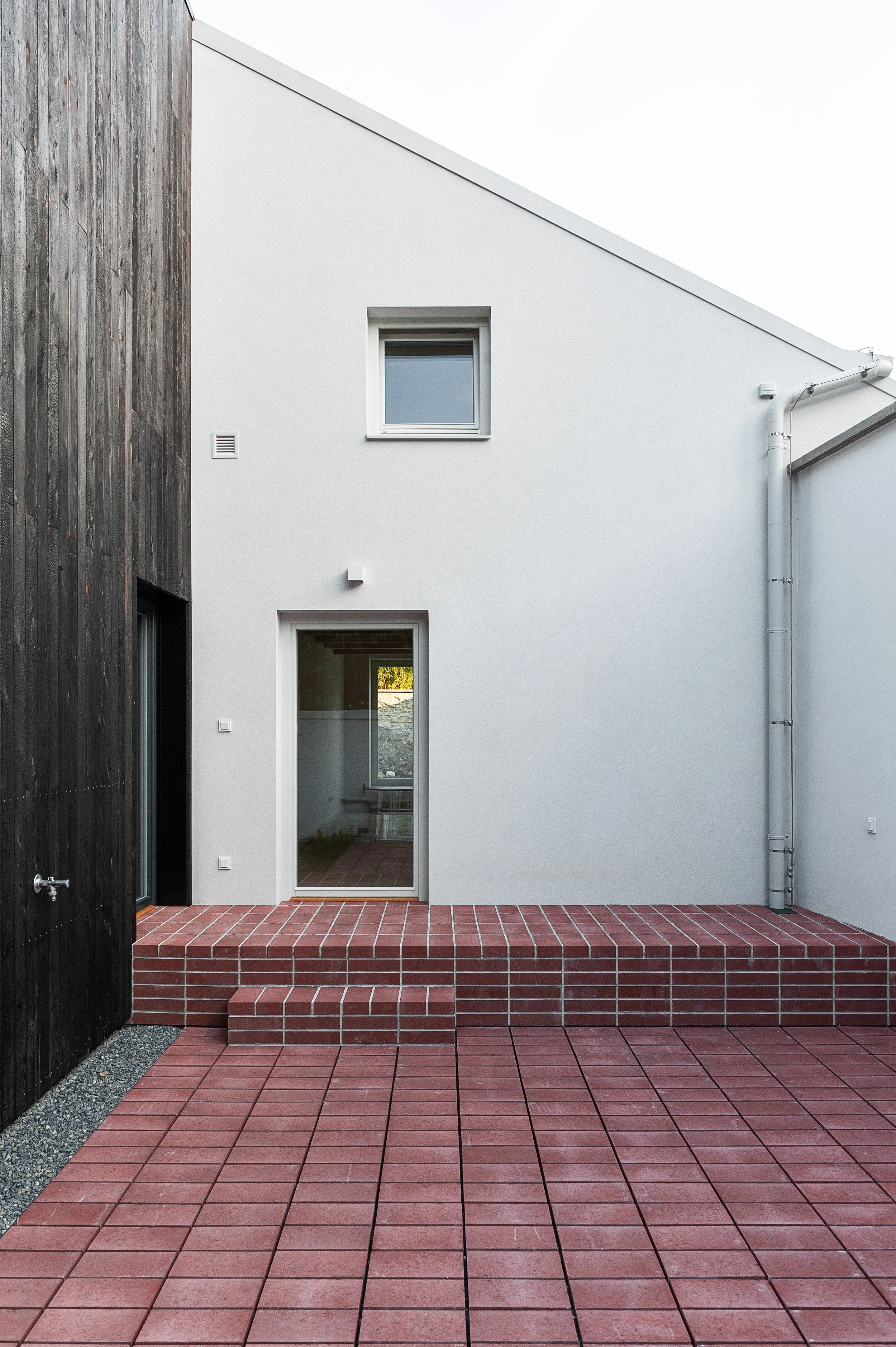 černý bílý důmZa zdí v zahradě je dům. Pokoje jsou spojeny se zahradou. V patře je obytný prostor s výhledy ma okolní krajinu. Černý dům je nový, bílý dům je starý.